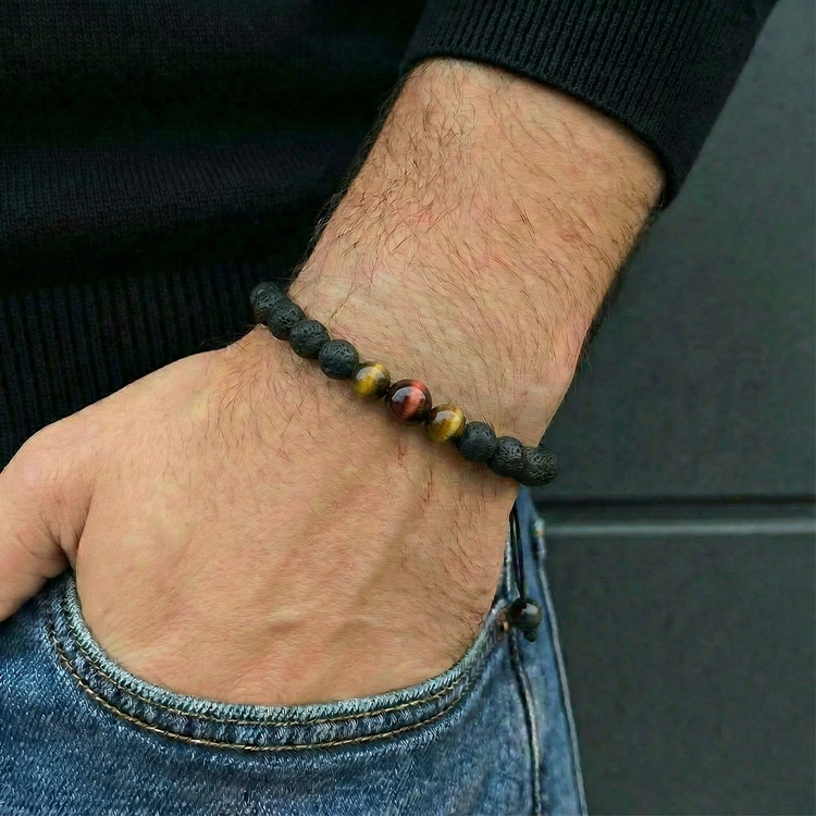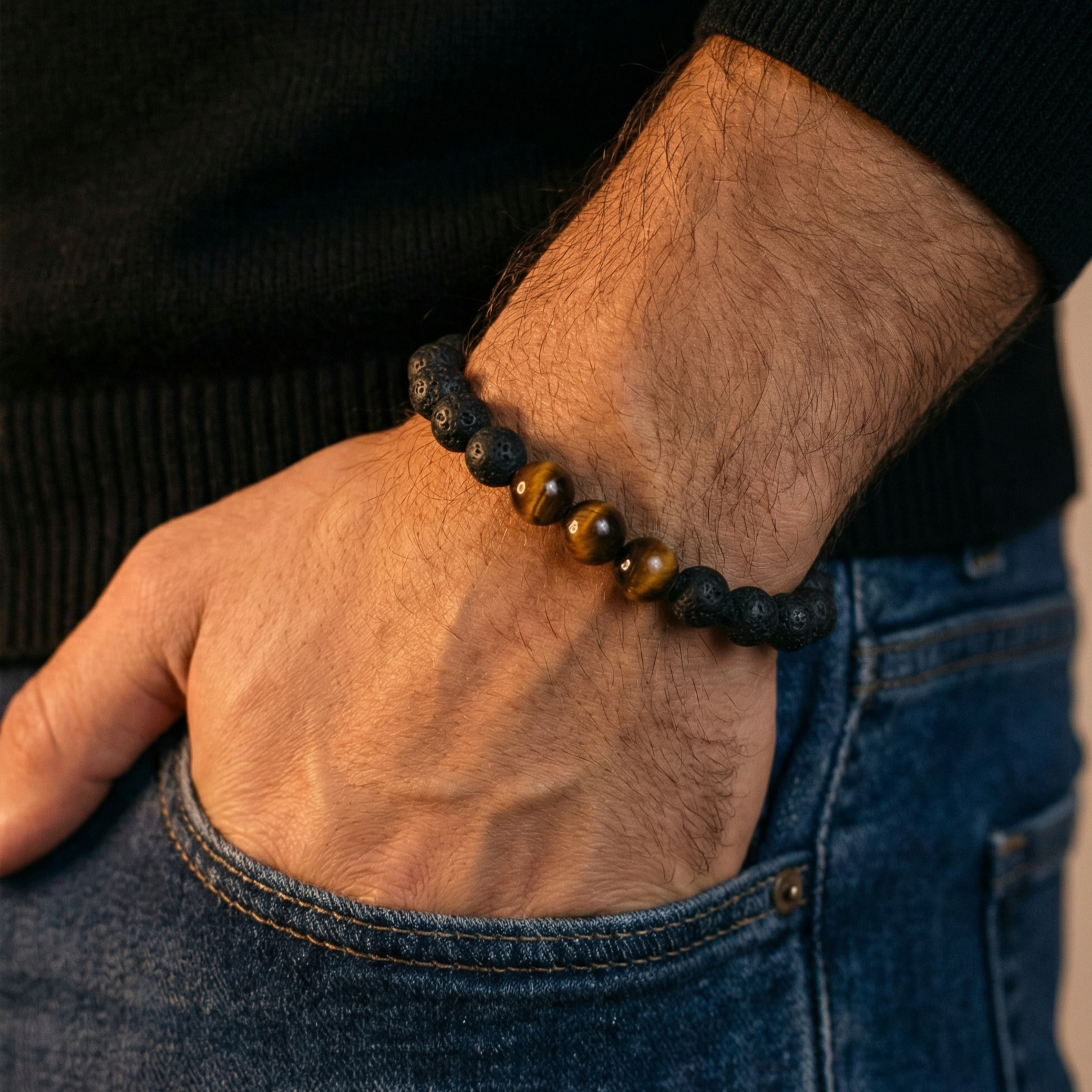 لاوا + چشم ببر+ چشم شاهین = انرژی خالص 💎🔥 قدرت، تمرکز، جسارت، محافظت… همه تو یه دستبند! انرژی خالص قدرت، جسارت و محافظت در یک دستبند با خواص روحی و انرژی. سنگ لاوا (Lava Stone): تثبیت و تعادل انرژی کاهش استرس و اضطراب حس قدرت و پایداری چشم بُز (Tiger’s Eye): افزایش شجاعت و اعتماد به نفس تقویت تمرکز و تصمیمگیری محافظت در برابر انرژی منفی چشم شاهین (Hawk’s Eye / Blue Tiger’s Eye): آرامش ذهن و کاهش استرس تقویت دیدگاه منطقی و تمرکز افزایش شهود و محافظت انرژی